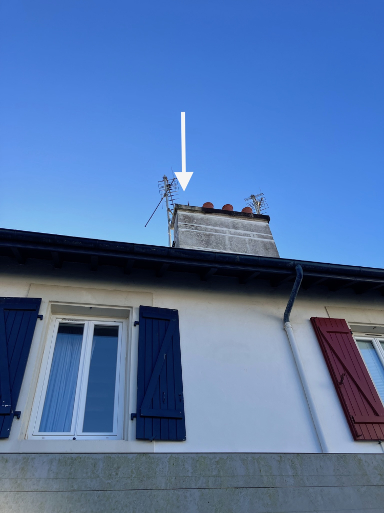 Expertise, maison sur Biarritz. Problème d’humidité dans toute la maison. Odeur persistante. Après investigation on s’est aperçu qu'a l'étage il y avait une cheminée qui avait été condamnée. Seulement, le conduit, lui n’a pas été obturé. L'eau s'infiltre dans le mur et le sature diffusant de l'humidité dans la pièce puis dans toute l'habitation. Diagnostic confirmé en voyant par l'extérieur que le chapeau de cheminée avait disparu certainement après un événement climatique.